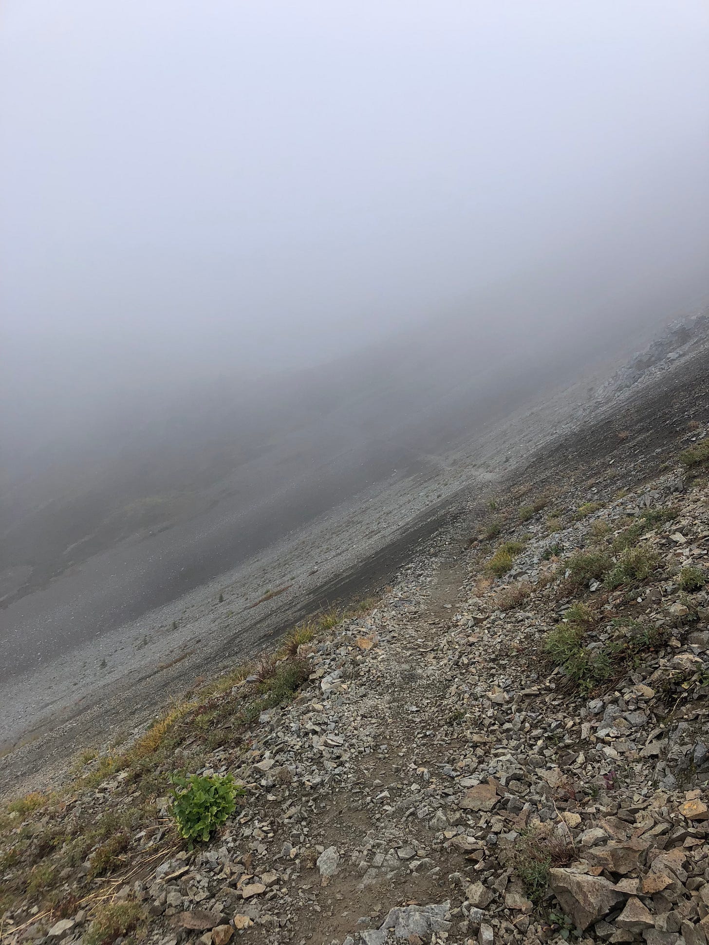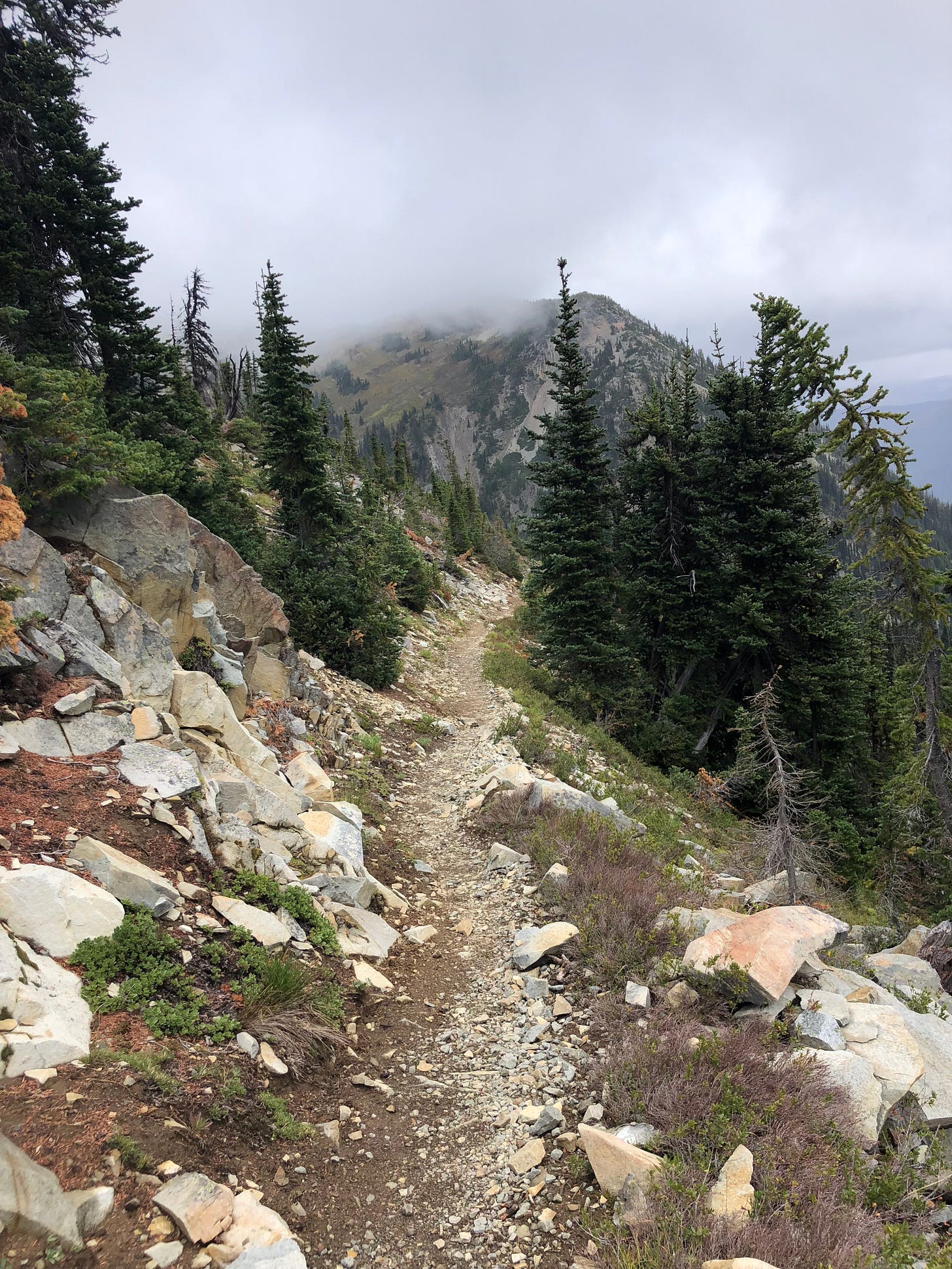 The remaining climb to Woody Pass along the PCT was brief, and unfortunately most of the surrounding views were shrouded with clouds on this misty day. This isn’t how I want you to end, PCT. I want those beautiful Washington views!