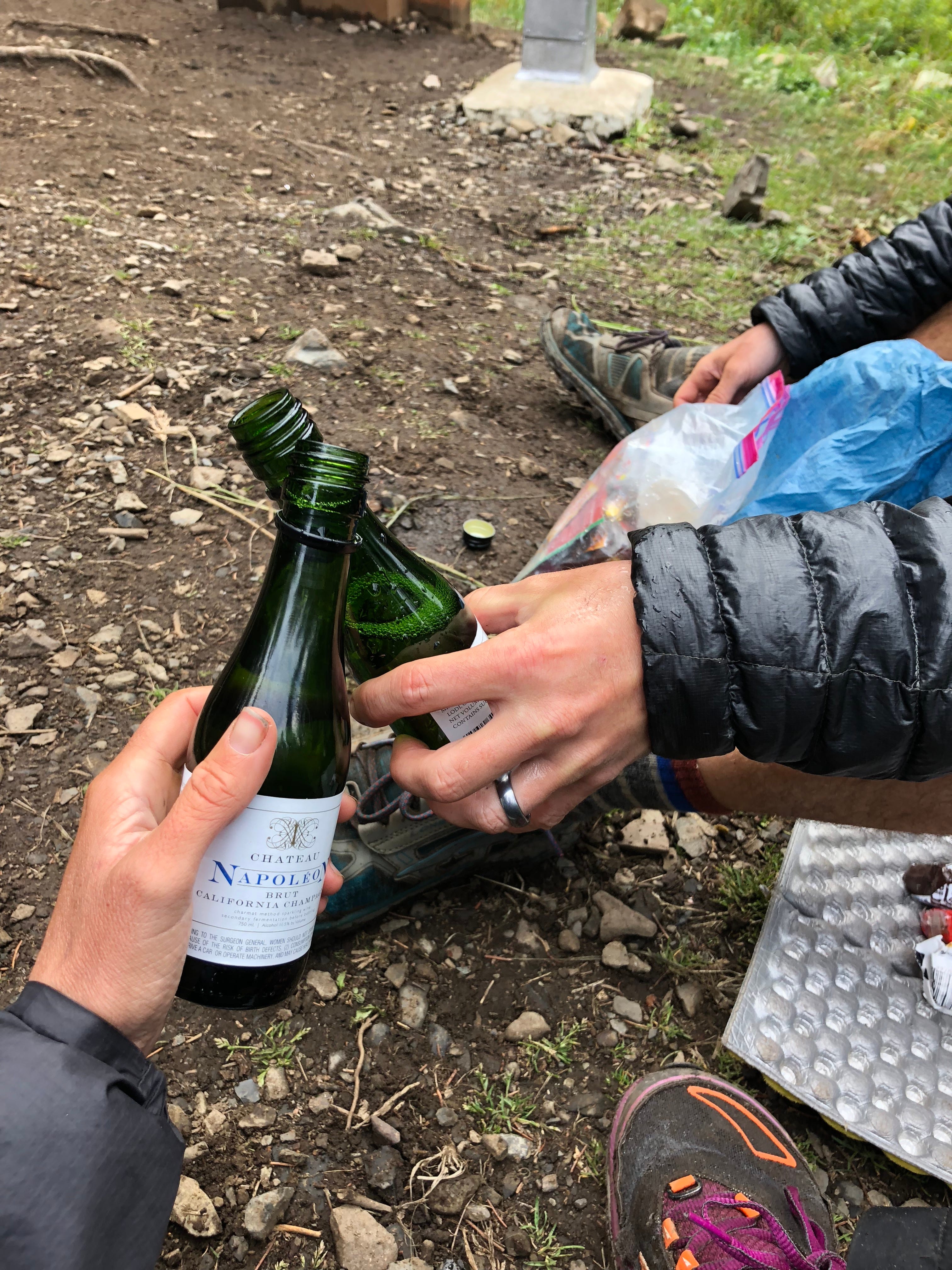 Shawn and I signed into the final trail register and took some pictures before finally taking our lunch break. We also popped open the mini bottles of champagne that we had packed out from Stehekin to celebrate.